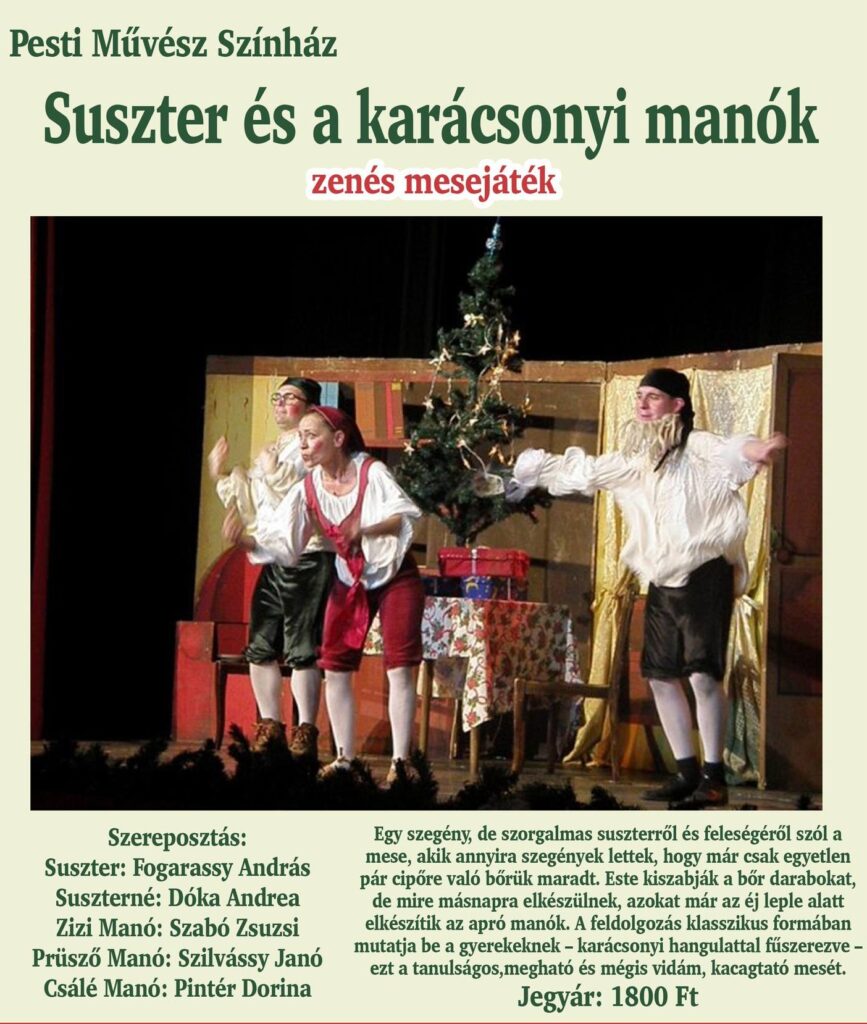 December 4-én az adventre hangolódás jegyében, a 4-5-6.osztályos tanulók a „Suszter és a karácsonyi manók” című előadást tekinthették meg a Kiskunlacházi Művelődési Központban. A jegyeket a gyerekek az osztályok Szülői Munkaközösségétől kapták Mikulás ajándékként. Köszönjük a szívet melengető élményt!